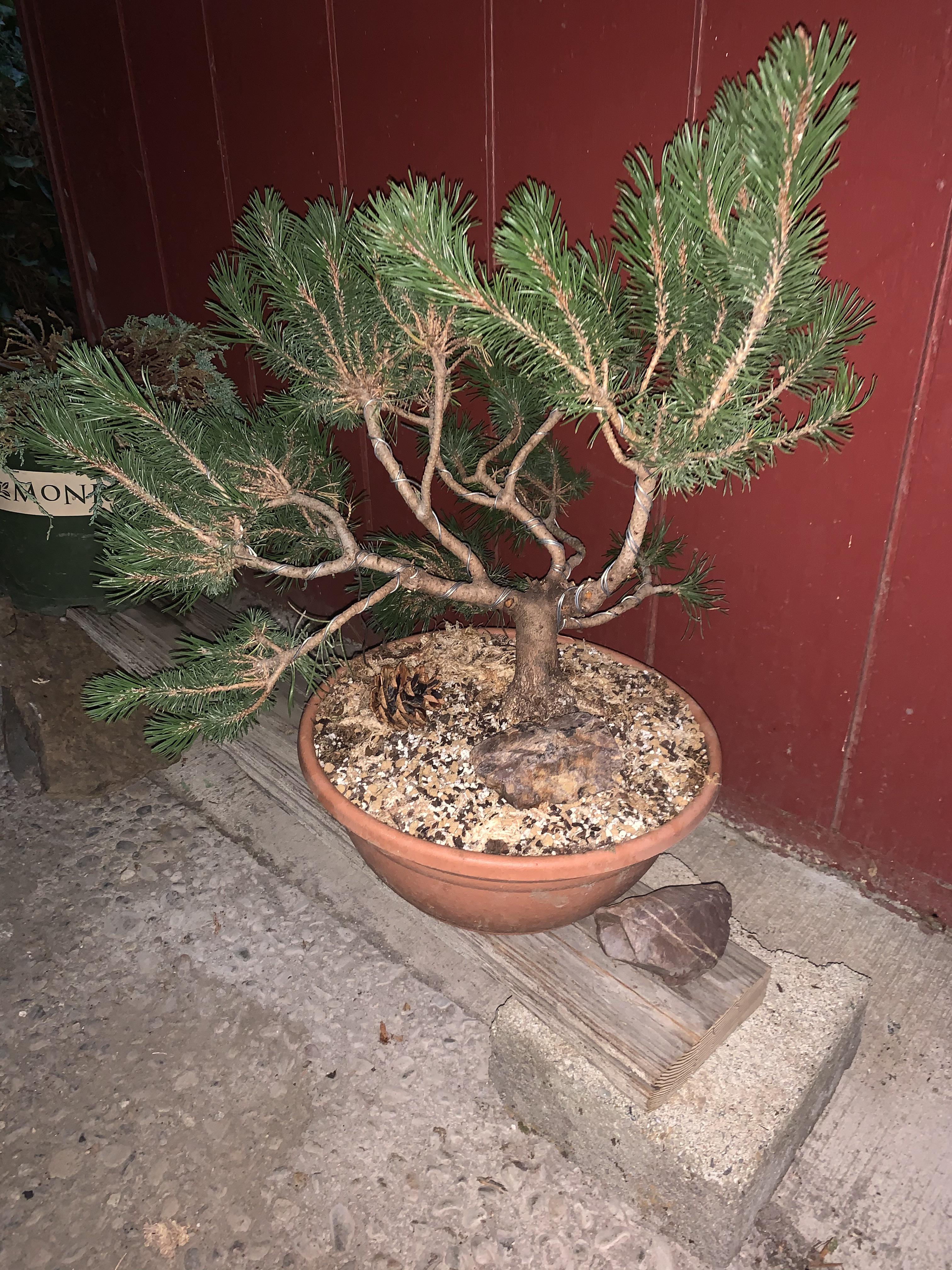 First summer it was cleaned up and repotted... Japanese white pine pinus parviflora scots pine pinus sylvestris ponderosa pine pinus ponderosa and mountain pine pinus mugo or mugo pine... Rest assured it will have much tlc.